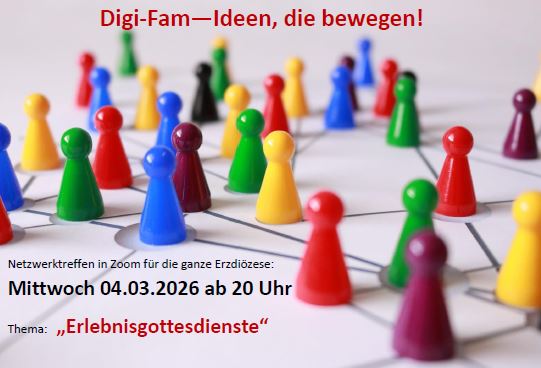 Digi-Fam ist ein Online-Angebot für Engagierte im Ehrenamt und hauptberuflich Seelsorgende in der ganzen Erzdiözese mit Ideenbörse und Austausch rund um das Thema Familienpastoral.